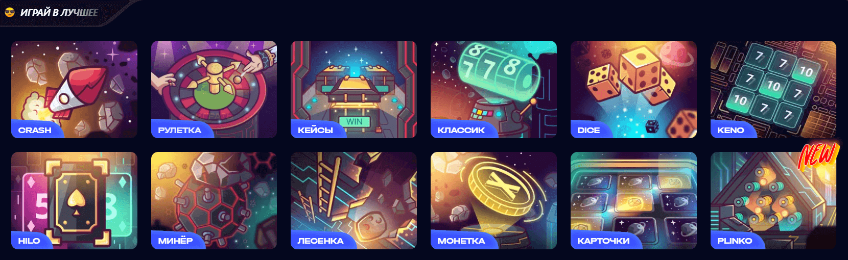 На платформе Up X представлено более 5000 игр от свыше 90 провайдеров, включая авторские разработки. Категории охватывают слоты, краш-игры, рулетку, кейсы, DICE, Plinko, HiLo, Keno, Минер, Лесенку, Монетку, Карточки и классические настольные форматы. Все игры работают на честной механике с прозрачной частотой выигрышей.